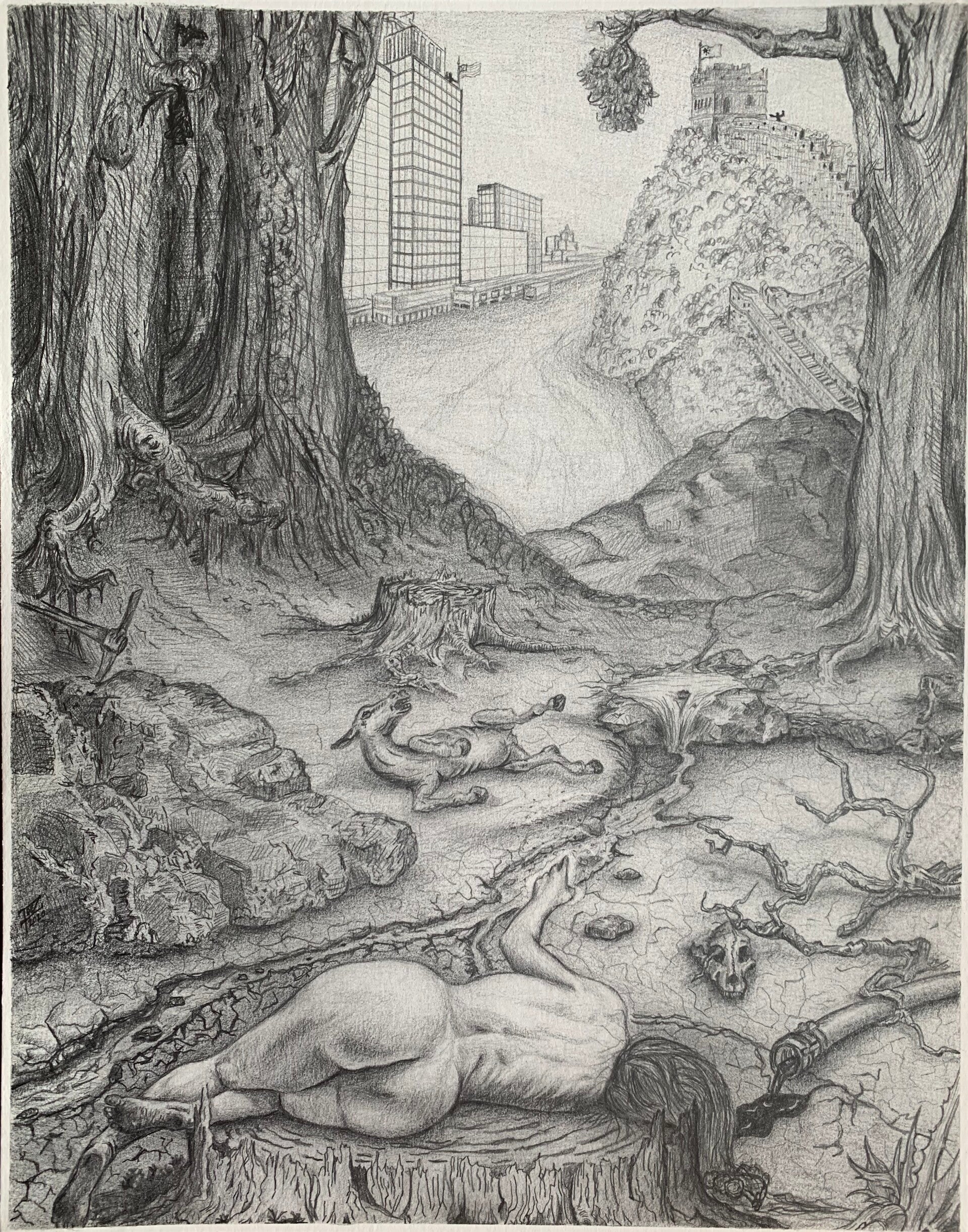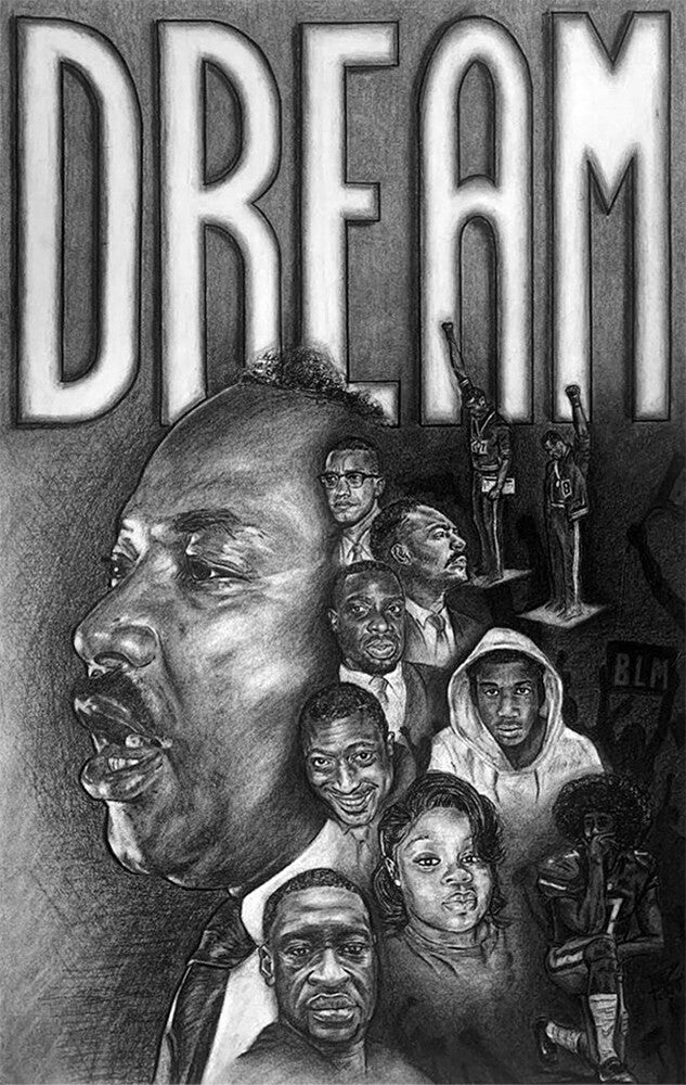Mixed Media artwork. Some techniques used include pencil, digital artwork, charcoal, conté & mixed materials.